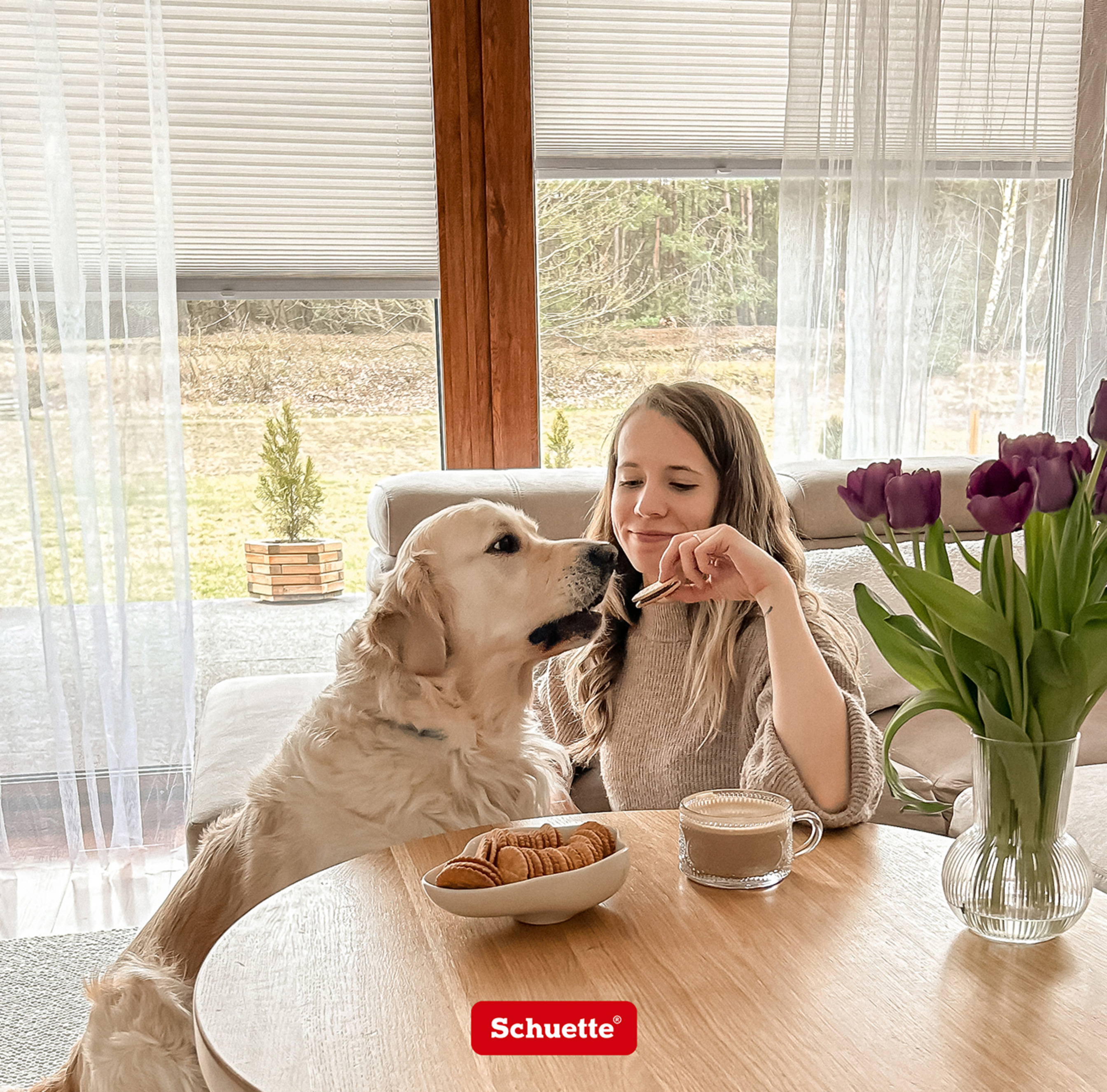 Wähle Rollo oder Plissee Jalousien mit Innenmontage und Verdunkelungsvorhänge mit Außenmontage. Auf diese Weise stoßen sie nicht aneinander, sondern schaffen ein multidimensionales Lichtspiel und unendliche Möglichkeiten an Lichtdurchlässigkeit.